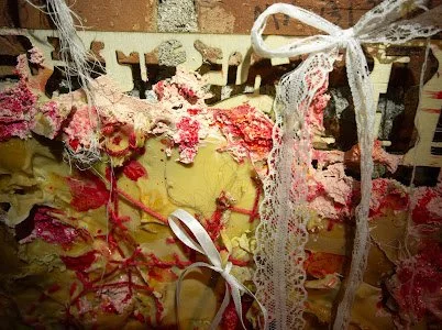 Liquid latex, resin, pumice gel, acrylic paint, acrylic ink, alcohol ink, yarn, lace, ribbon,